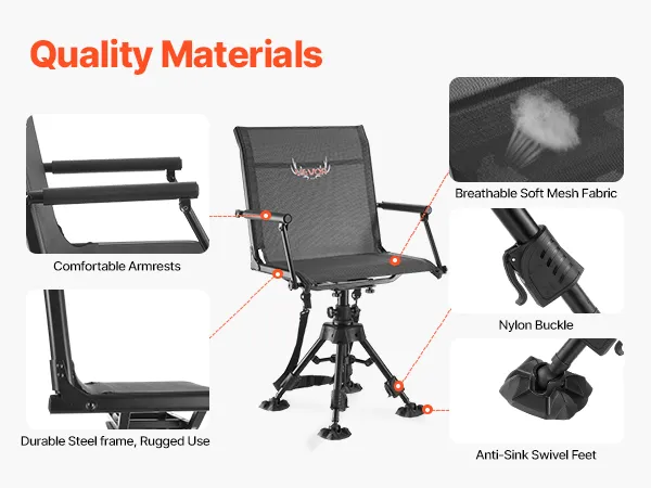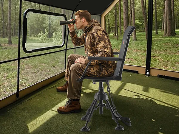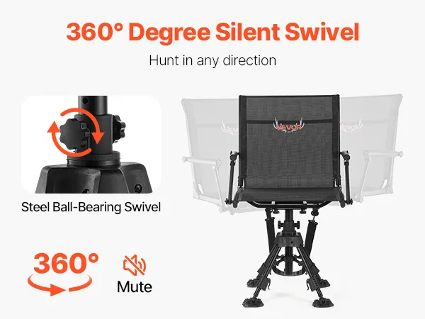 Deze hoogwaardige jachtstoel is speciaal ontworpen voor ambitieuze jagers en is voorzien van een geruisloos 360° draaimechanisme dat zorgt voor soepel en geruisloos draaien. Zo kunt u vanuit elke richting op uw doelwit richten en schieten! Ideaal voor de hertenjacht, kamperen, vissen of andere buitenactiviteiten.