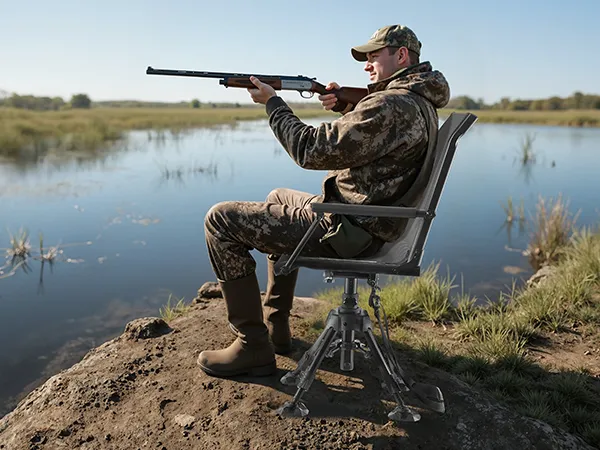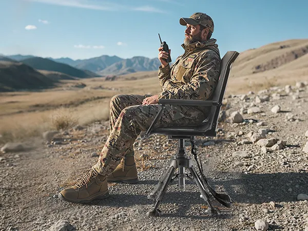 360° Rotatiesysteem: Deze jachtstoel is voorzien van een dubbel, geluidsarm rotatiesysteem voor soepelere en stillere bewegingen. Profiteer van volledige 360° rotatie om doelen in elke richting te volgen met minimale ruis of trillingen.