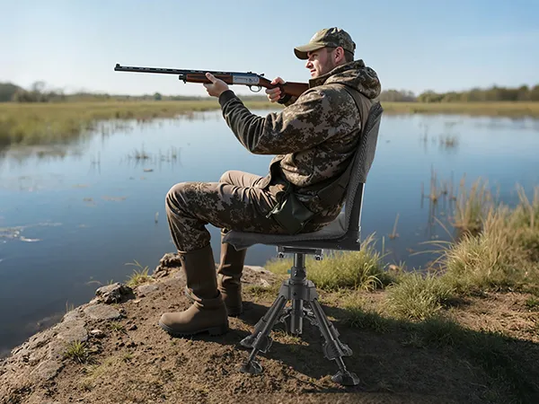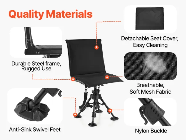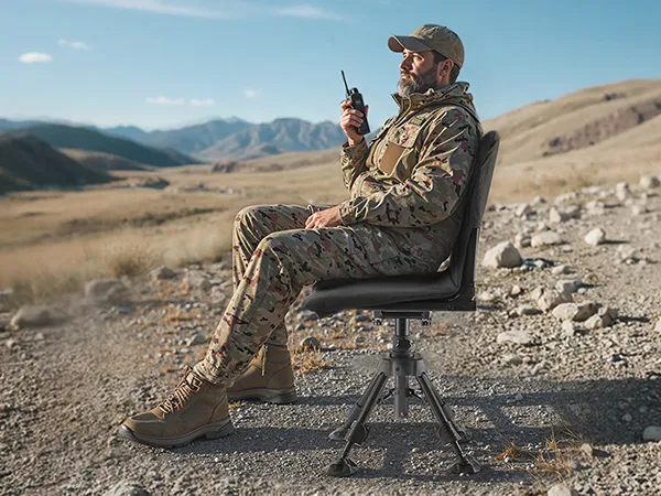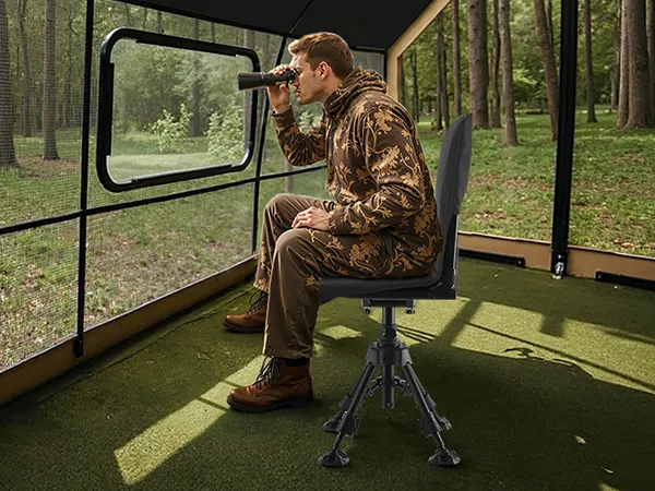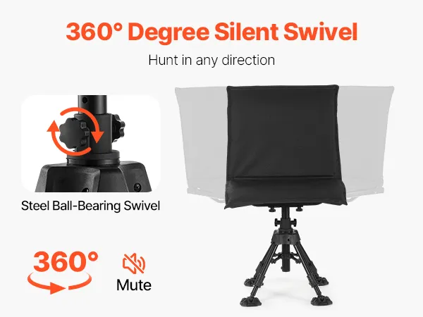 360° Rotatiesysteem: Deze jachtstoel is voorzien van een dubbel, geluidsarm rotatiesysteem voor soepelere en stillere bewegingen. Profiteer van volledige 360° rotatie om doelen in elke richting te volgen met minimale ruis of trillingen.