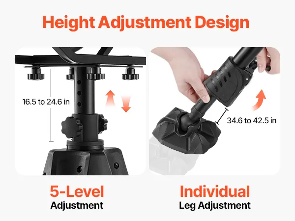 Verstelbare hoogte-instellingen: Deze verstelbare jachtstoel heeft 4 verstelbare poten (88-108 cm) en 5 zithoogtestanden (420-625 mm), waardoor u beter zicht en meer comfort krijgt op verschillende terreinen en in verschillende buitenomgevingen.
