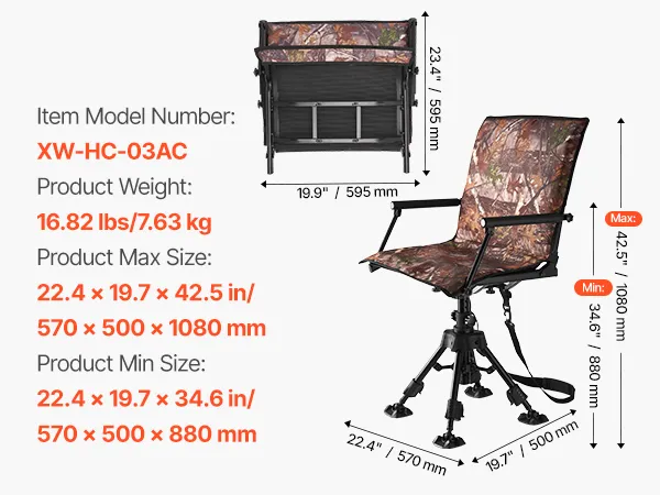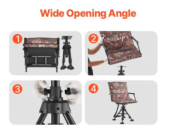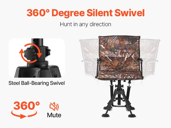 Deze hoogwaardige jachtstoel is speciaal ontworpen voor ambitieuze jagers en is voorzien van een geruisloos 360° draaimechanisme dat zorgt voor soepel en geruisloos draaien. Zo kunt u vanuit elke richting op uw doelwit richten en schieten! Ideaal voor de hertenjacht, kamperen, vissen of andere buitenactiviteiten.