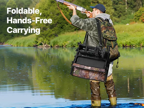 V:Hoeveel gewicht kan deze stoel dragen? Is hij geschikt om mee te vissen en te kamperen? A: Deze jachtstoel heeft een versterkt stalen buisframe met een maximaal draagvermogen van 158 kg. Hij is ontworpen voor veeleisende buitenactiviteiten zoals kamperen, vissen en jagen. Het stevige frame en de antislipvoetjes zorgen voor uitstekende stabiliteit, zelfs op oneffen ondergrond.