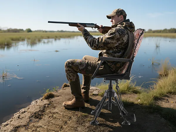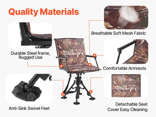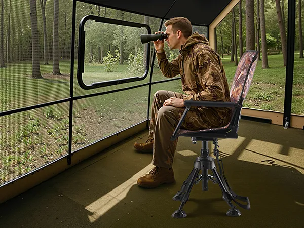 360° Rotatiesysteem: Deze jachtstoel is voorzien van een dubbel, geluidsarm rotatiesysteem voor soepelere en stillere bewegingen. Profiteer van volledige 360° rotatie om doelen in elke richting te volgen met minimale ruis of trillingen.