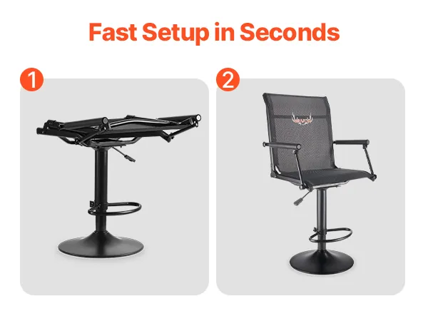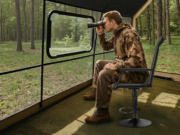 Deze hoogwaardige jachtstoel is speciaal ontworpen voor ambitieuze jagers en is voorzien van een geruisloos 360° draaimechanisme dat zorgt voor soepel en geruisloos draaien. Zo kunt u vanuit elke richting op uw doelwit richten en schieten! Ideaal voor de hertenjacht, kamperen, vissen of andere buitenactiviteiten.