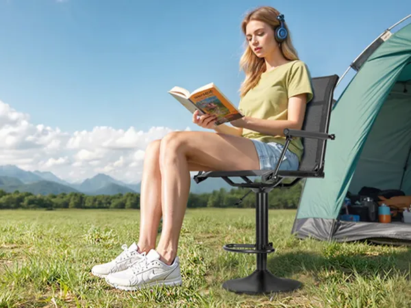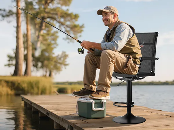 360° draaibaar: Deze visstoel heeft een verbeterde, geluidsarme basis die geluid en wiebelen vermindert. U kunt hem gemakkelijk in elke richting draaien. De hydraulische lift van 150 mm zorgt voor een eenvoudige hoogteverstelling voor beter zicht en comfort.