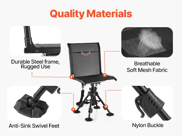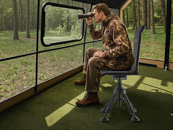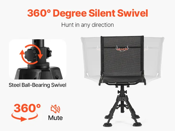 Deze hoogwaardige jachtstoel is speciaal ontworpen voor ambitieuze jagers en is voorzien van een geruisloos 360° draaimechanisme dat zorgt voor soepel en geruisloos draaien. Zo kunt u vanuit elke richting op uw doelwit richten en schieten! Ideaal voor de hertenjacht, kamperen, vissen of andere buitenactiviteiten.
