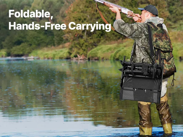 V:Hoeveel gewicht kan deze stoel dragen? Is hij geschikt om mee te vissen en te kamperen? A: Deze jachtstoel heeft een versterkt stalen buisframe met een maximaal draagvermogen van 158 kg. Hij is ontworpen voor veeleisende buitenactiviteiten zoals kamperen, vissen en jagen. Het stevige frame en de antislipvoetjes zorgen voor uitstekende stabiliteit, zelfs op oneffen ondergrond.