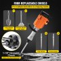 Er zijn vier beitels, die allemaal zijn gesmeed van eersteklas warmtebehandeld gelegeerd staal. De 1-1/8 inch zeskantkop kan de beitels snel monteren en demonteren zonder per ongeluk te laten vallen.