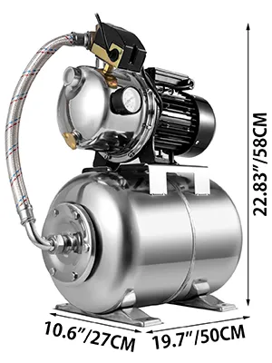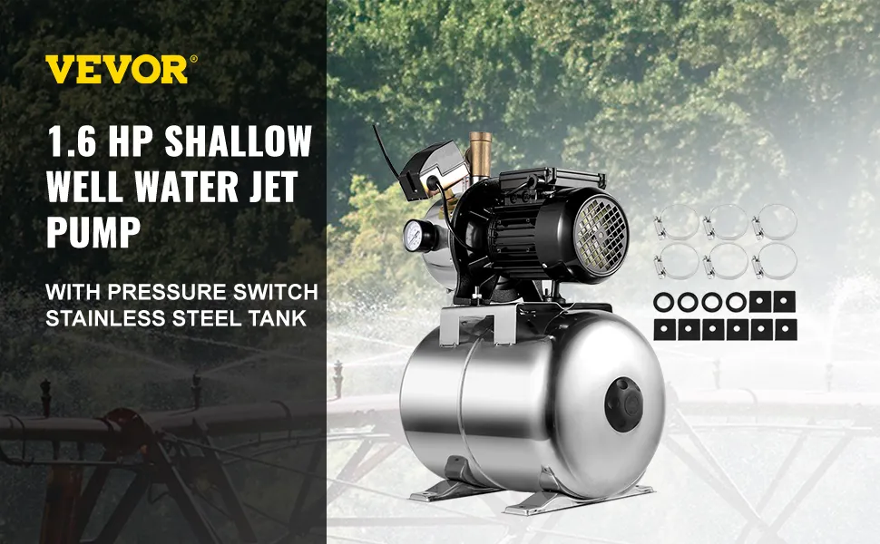De ondiepwaterpomp is gemaakt van roestvrij staal met een stalen tank van 4,8 gallon, geselecteerd om water met hoge sterkte, taaiheid en slijtvastheid te transporteren.