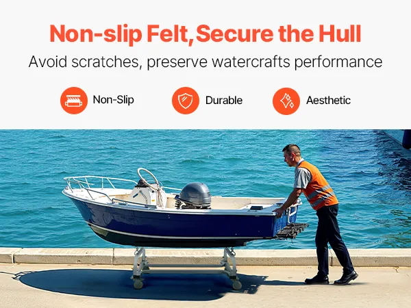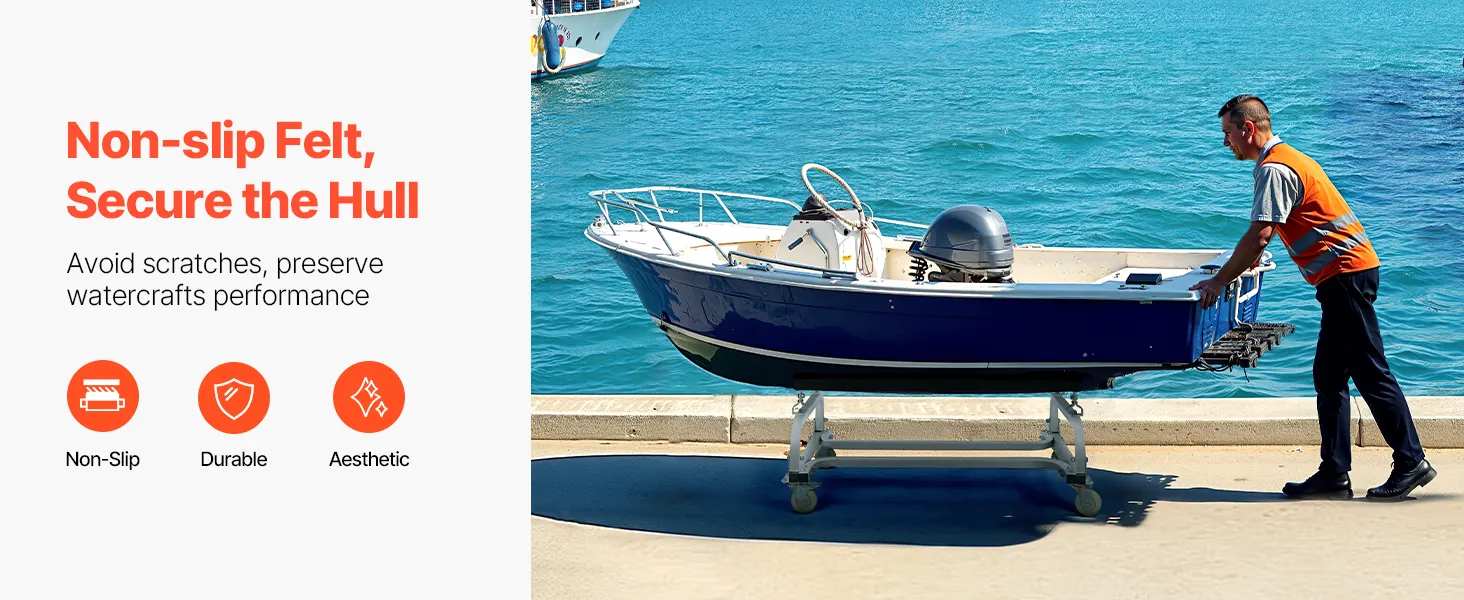 Bunk Tube Edge Wrapping: The soft felt fully covers the bunk tubes, effectively avoiding scratches on the boat and providing extra friction to avoid slipping. The felt also adds an aesthetic touch to the jet ski dolly cart's appearance.