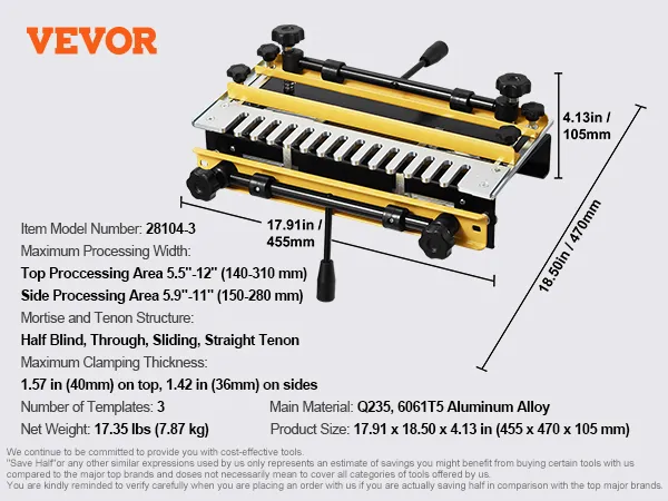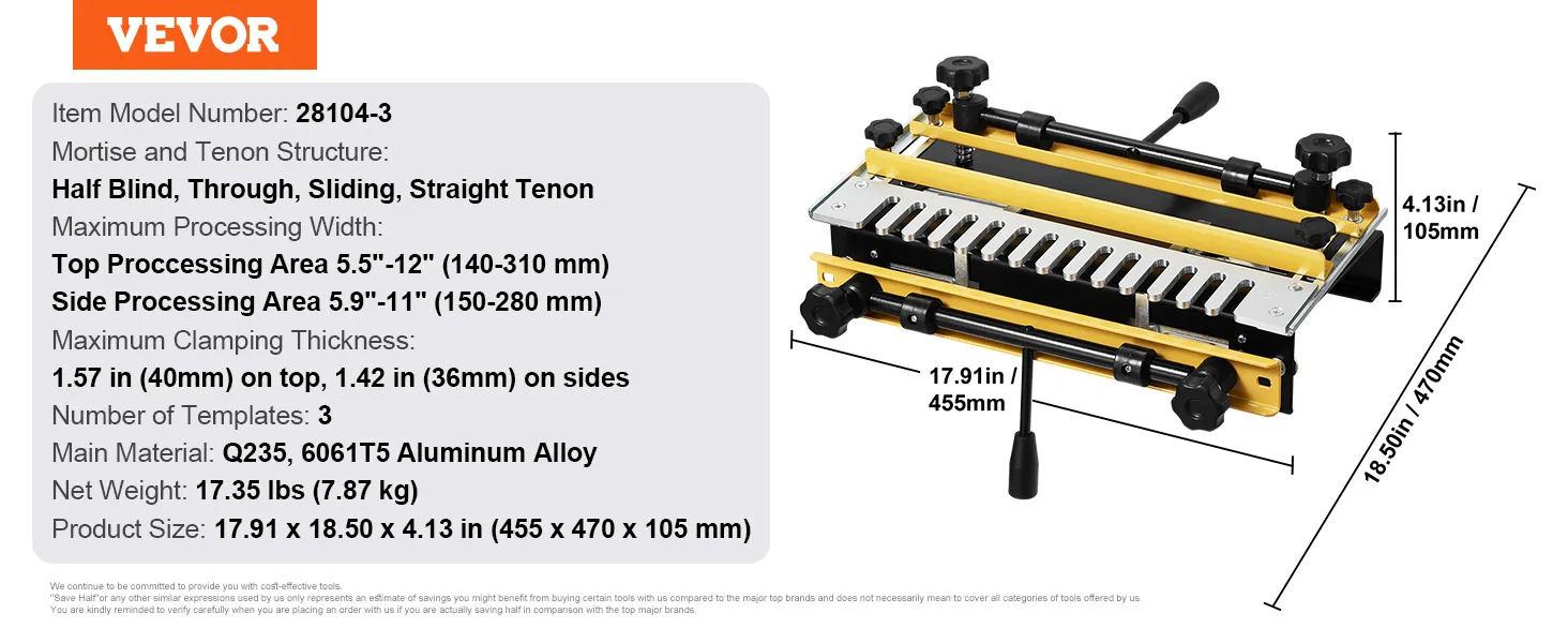 12" Processing Width: Whether you're crafting a large piece or something smaller, the dovetail jig with wide processing width (5.5"-12" on top and 5.9"-13" on the side) has you covered, greatly increasing the dove tailing jig's versatility. More width means more possibilities for your woodworking projects.