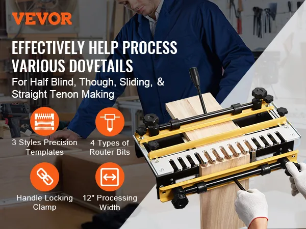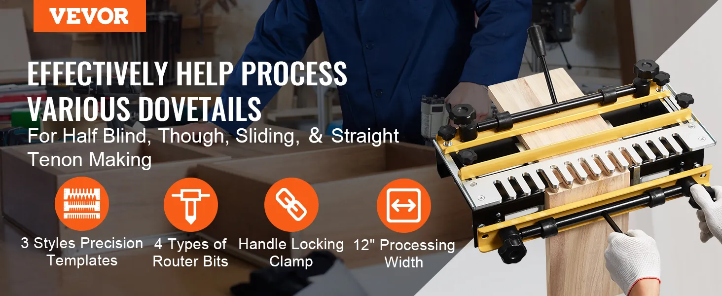 VEVOR Dovetail Jig, 12 in Width, Dove Tailing Router Jigs with 4 Router Bits & 5 Templates, Precise Alignment Dove Tail Jig, Mortise and Tenon Woodworking Tools for Furniture & Wood Cabinet Making