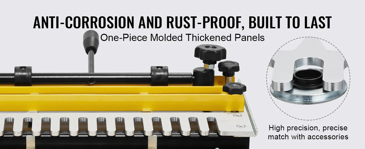 Crafted from one-piece, thickened aluminum alloy, our dovetail jig features a spray coating on the surface that provides excellent corrosion and rust resistance. This ensures durability and longevity, while the high precision ensures an excellent fit with all accessories.