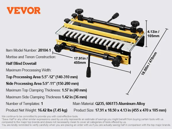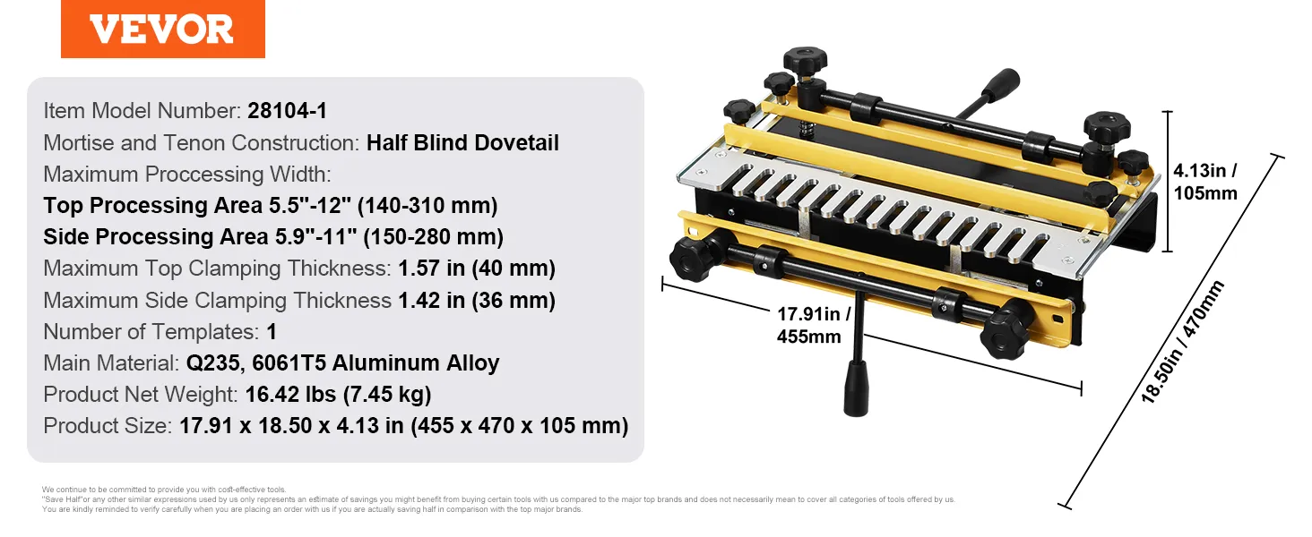 12” Processing Width: Whether you're crafting a large piece or something smaller, the dovetail jig with wide processing width (5.5"-12" on top and 5.9"-11" on the side) has you covered, greatly increasing the dove tailing jig's versatility. More width means more possibilities for your woodworking projects.