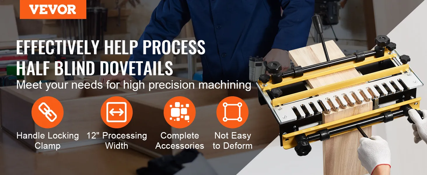 This dovetail jig comes with 1/2" half blind template, making it suitable for small furniture effectively making. Its locking lever design ensures a secure grip, allowing for precise, stable cuts every time. Crafted from cast aluminum, the template promises long-term durability.