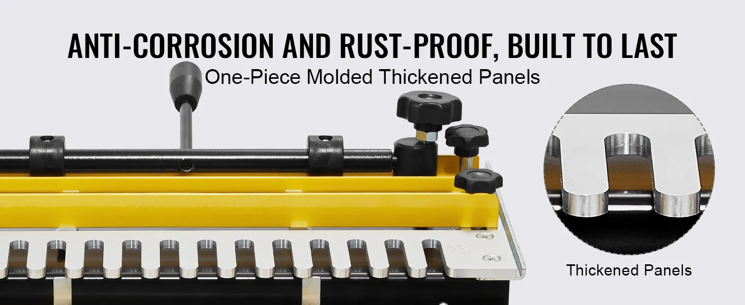 Crafted from one-piece, thickened aluminum alloy, our dovetail jig features a spray coating on surface that provides excellent corrosion and rust resistance. This ensures durability and longevity, while the high precision ensures an excellent fit with all accessories.