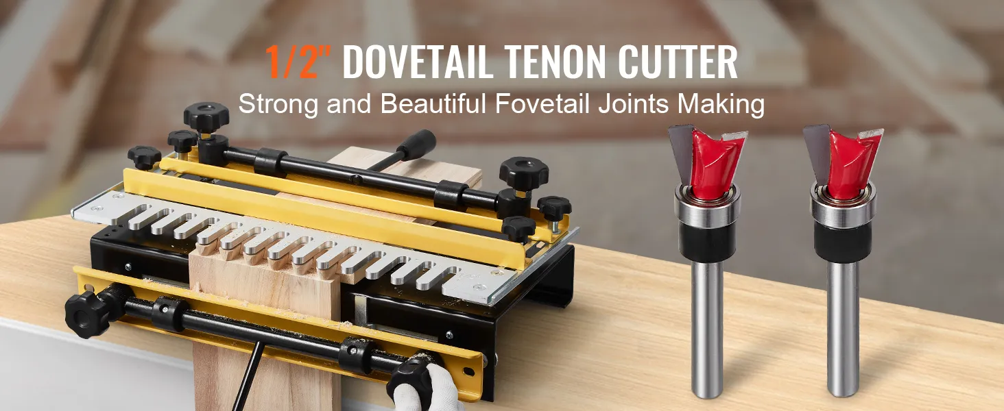 1/2" Dovetail Router Bits: Looking to create strong and stylish dovetail joints? These two 1/2" router bits of dovetail jig are just what you need. Dovetail joints made with these bits are built to last, thanks to their unique shape that keeps your pieces tightly connected. No more worrying about your joints coming apart—these bits help you get the job done right, every time.