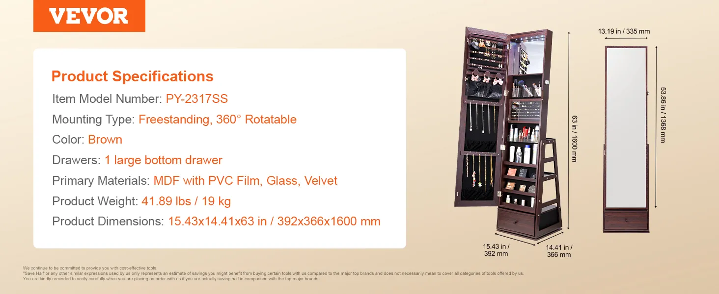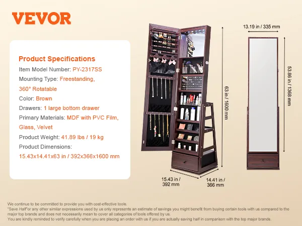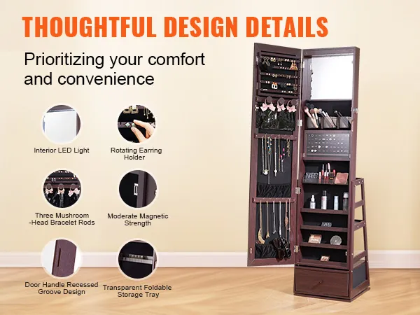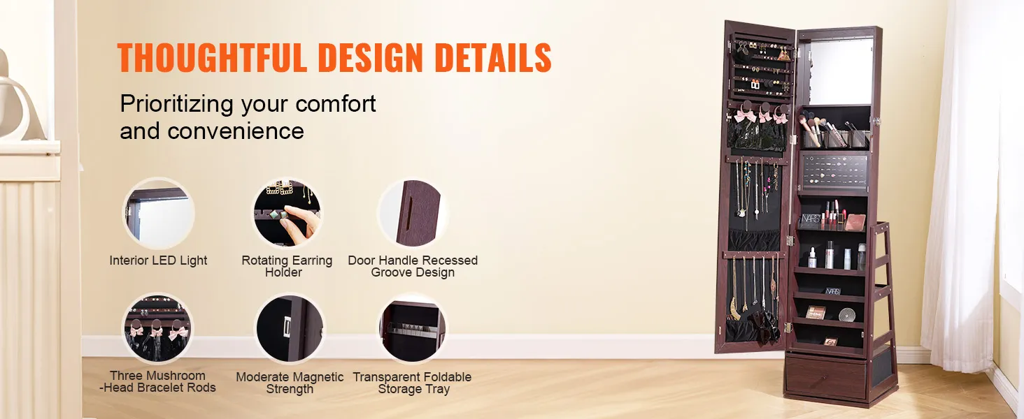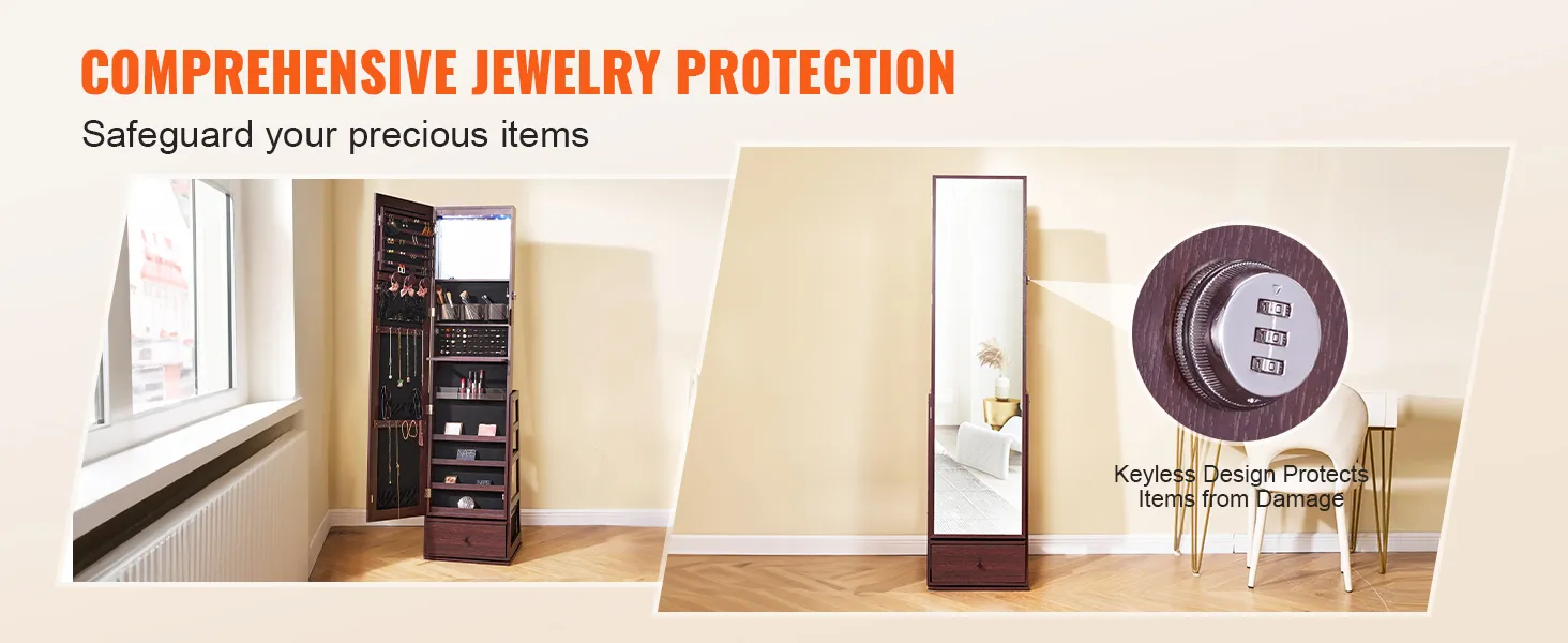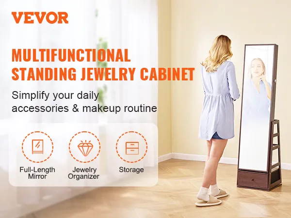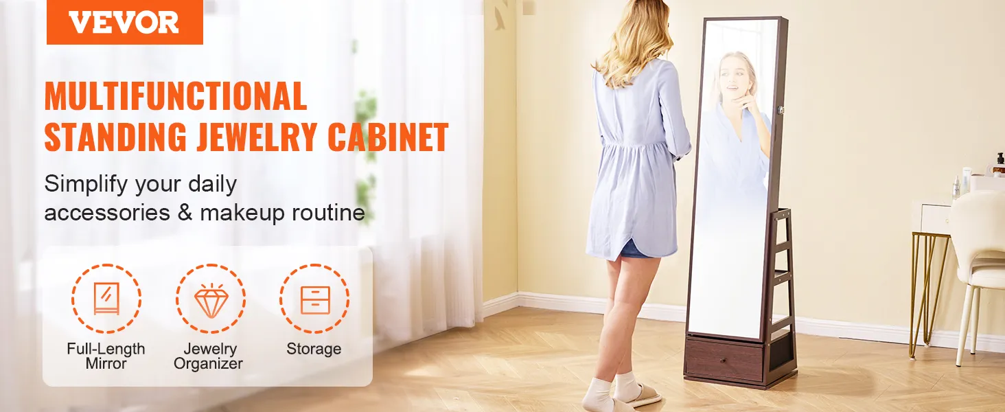 VEVOR sieradenkastje met staande spiegel: Moeiteloos sieraden ordenen