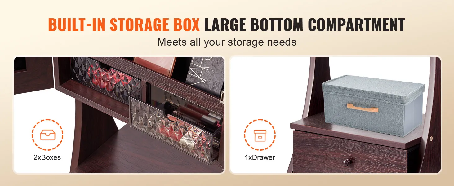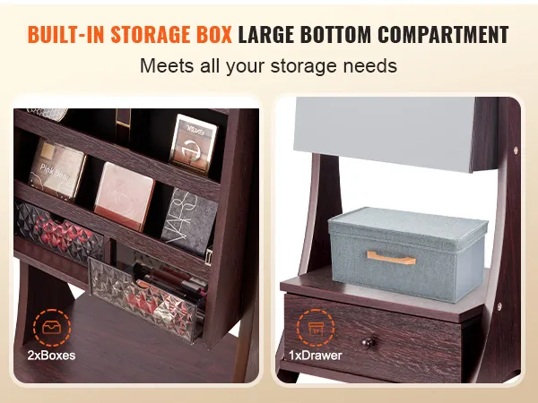 • 3-in-1 Functionality: The VEVOR standing mirror with storage is not only a jewelry organizer but also a full-length mirror, providing a head-to-toe view of your outfit. It features the large foldable storage drawer and shelves, making it an essential daily item for every girl.