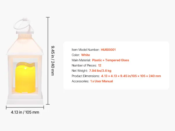 Opvallend formaat: met een afmeting van 105 x 105 x 240 mm zijn deze decoratieve lantaarns een echte blikvanger, meer dan mini-theelichtjes. Met een hoogte van 24 cm dienen ze als decoratie zonder de conversatie te hinderen, waardoor ze ideaal zijn als tafeldecoratie voor bruiloften, feesten of privébijeenkomsten.