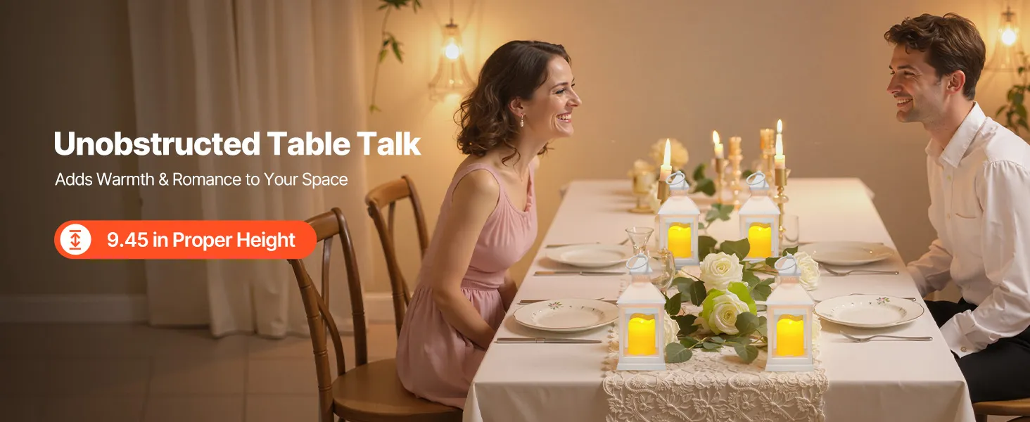 Met een hoogte van slechts 240 mm passen deze decoratieve lantaarns perfect op eettafels zonder het zicht te belemmeren. Ze creëren een warme, romantische sfeer en maken elke bijeenkomst intiemer en romantischer.