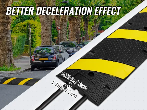 De VEVOR rubberen verkeersdrempel heeft gele strepen en reflecterende kralen. Hierdoor is hij goed zichtbaar voor bestuurders en voetgangers. Het reflecterende ontwerp waarschuwt bestuurders om van tevoren langzamer te rijden. Het helpt het risico op ongelukken te verminderen. De antisliptextuur verbetert de wrijving en voorkomt uitglijden en vallen. Het is geschikt voor gebruik in gebieden met veel voetgangersverkeer. De snelheidsboost verhoogt de veiligheid door kabels beter zichtbaar te maken. U kunt erop vertrouwen dat hij kabels vastzet en tegelijkertijd de veiligheid verbetert.
