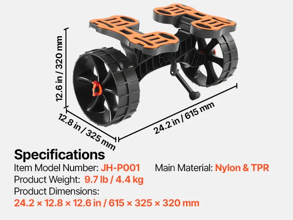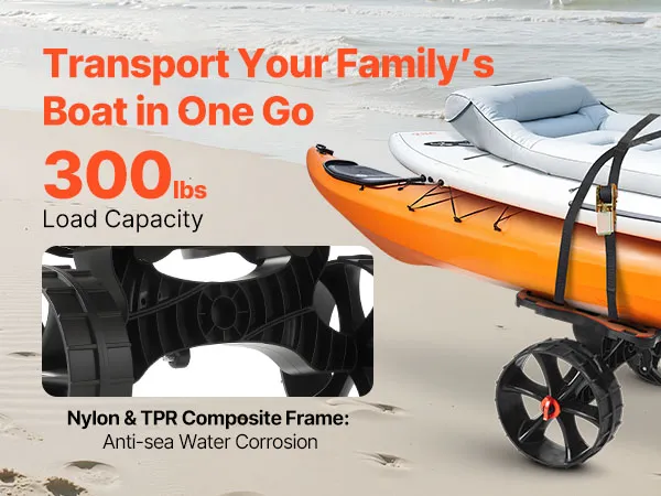 Hoge belastbaarheid: het vervormingsbestendige frame van de kanotrailer is gemaakt van nylon en TPR-composietmateriaal en ondersteunt tot 136 kg. Ideaal voor het veilig vervoeren van kajaks en paddleboards tijdens familietrips en outdooravonturen.