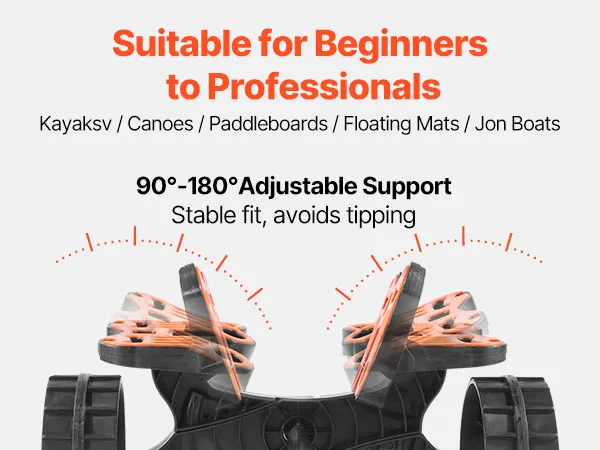 Universele compatibiliteit: De verstelbare beugel van 90°-180° past op platte, gebogen en V-vormige rompen. Onze kajaktrolley is geschikt voor paddleboards, kano's, drijfmatten, kajaks en boten met een platte bodem, waardoor compatibiliteitsproblemen voor gebruikers worden verminderd.