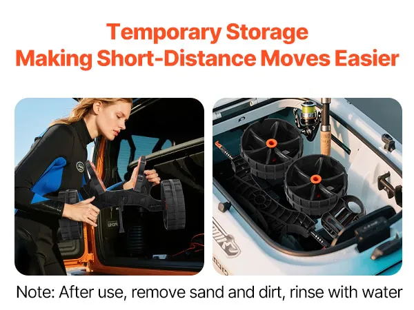 Opvouwbaar en compact: het lichtgewicht, afneembare ontwerp maakt gemakkelijk transport met één hand mogelijk. De paddleboardkar past comfortabel in de kofferbak van uw SUV of in de opbergruimte van uw boot, waardoor hij ideaal is voor gemakkelijk transport of snelle opslag wanneer u hem niet gebruikt.