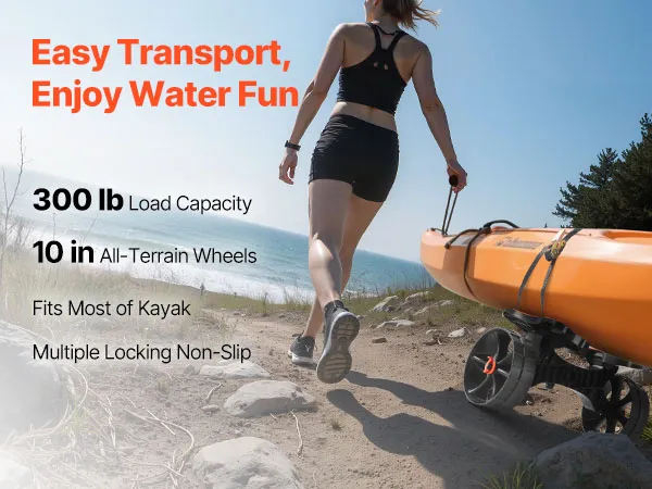 Met een laadvermogen tot 136 kg is deze kajakkar geschikt voor het vervoeren van kleine boten of kajaks met uitrusting. Hij is gemakkelijk te manoeuvreren, veilig en ideaal voor ontspannen buitenactiviteiten en licht transport.