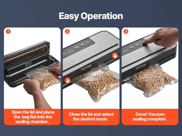 Deze vacuümsealer voor vlees is geschikt voor een breed scala aan voedingsmiddelen en biedt meerdere modi voor vacumeren en sealen. Door de grote veelzijdigheid is het ideaal voor een breed scala aan afdichtingstaken.