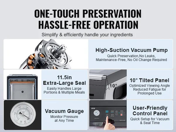 Dankzij de eenvoud met één klik kunnen zelfs nieuwelingen in de keuken deze kamerafdichter in een mum van tijd onder de knie krijgen. Met een premium vacuümpomp wordt de smaak sneller vastgehouden, zodat u zich geen zorgen hoeft te maken over onderhoud en olieverversingen. Hierdoor blijft het voedsel probleemloos vers.