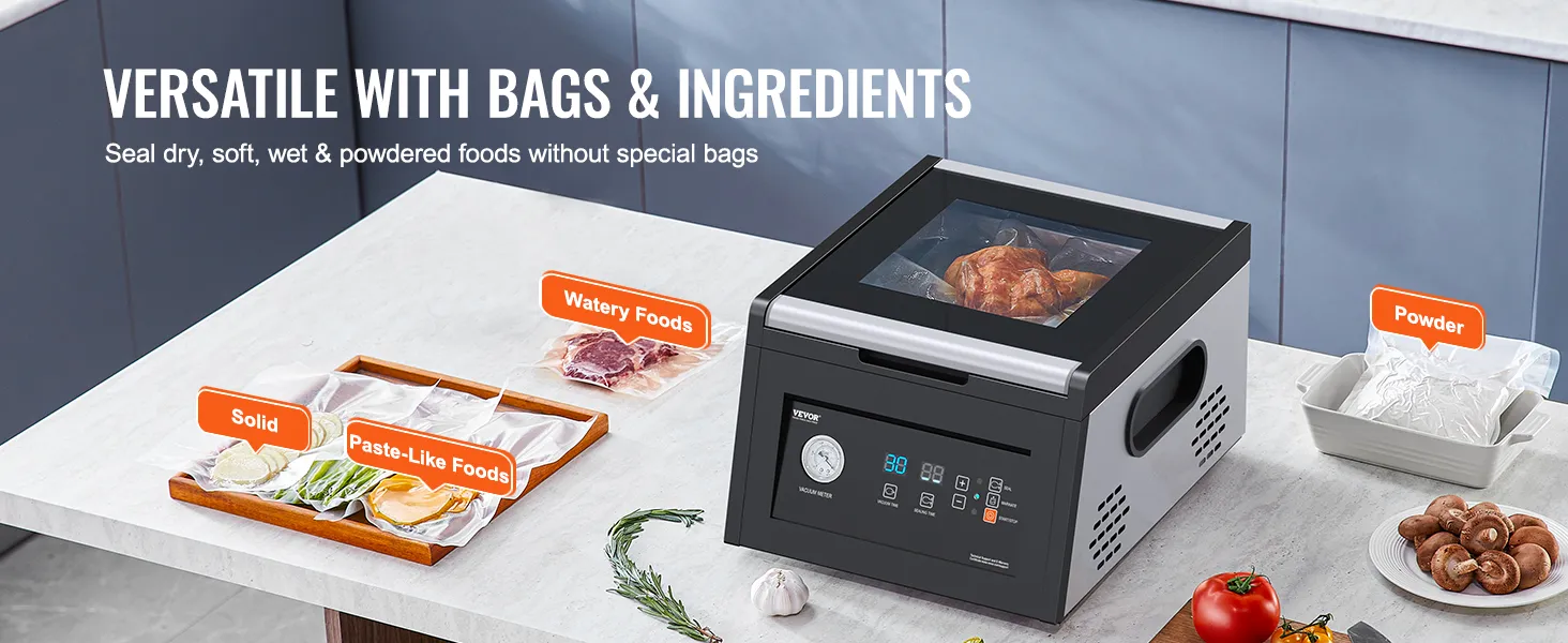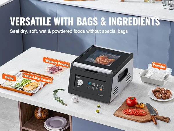 Universele toepasbaarheid: ongeacht of het natte, droge, zachte of poederachtige ingrediënten zijn en ongeacht welk type zak - onze vacuümverpakkingsmachine kan alles aan. Perfect voor het vacumeren, marineren en sealen van waterige voedingsmiddelen, vaste stoffen, poeders en pasteuze voedingsmiddelen. Haal de ultieme voedselconserverer in huis en laat elke hap als de eerste voelen!