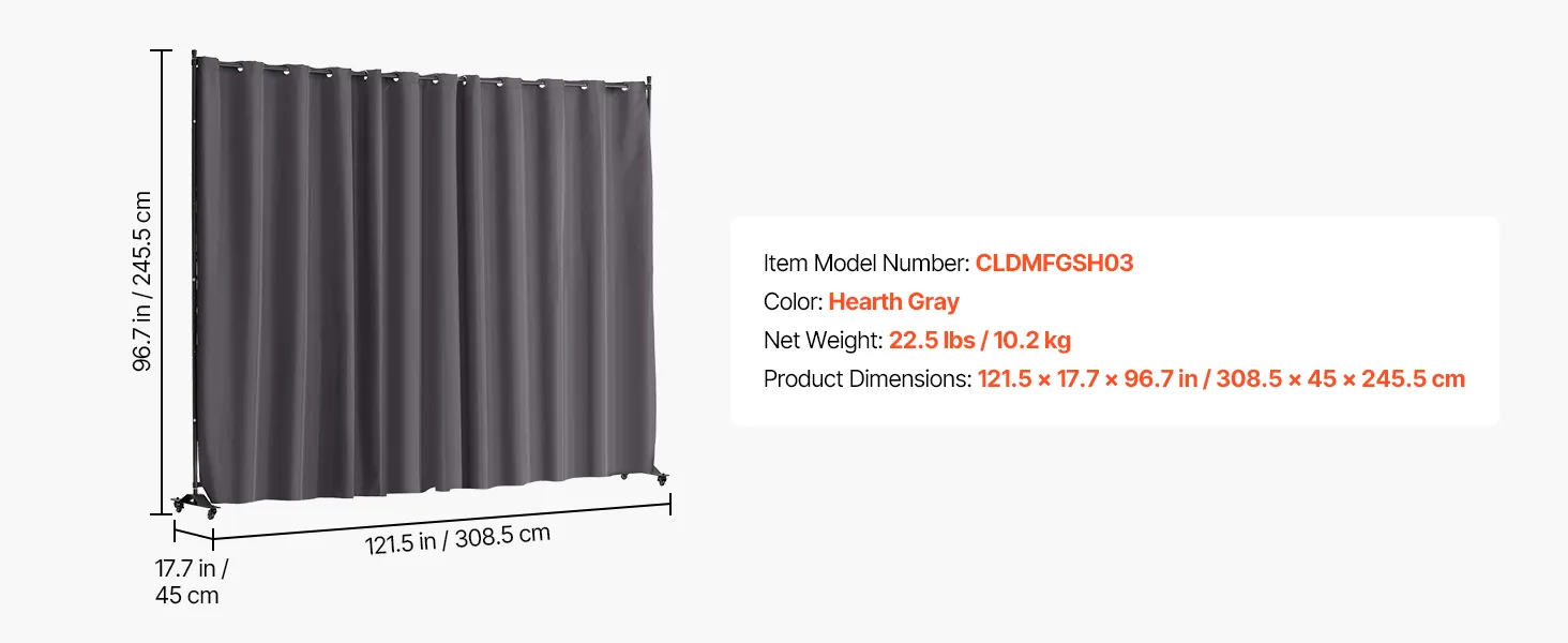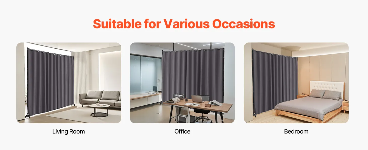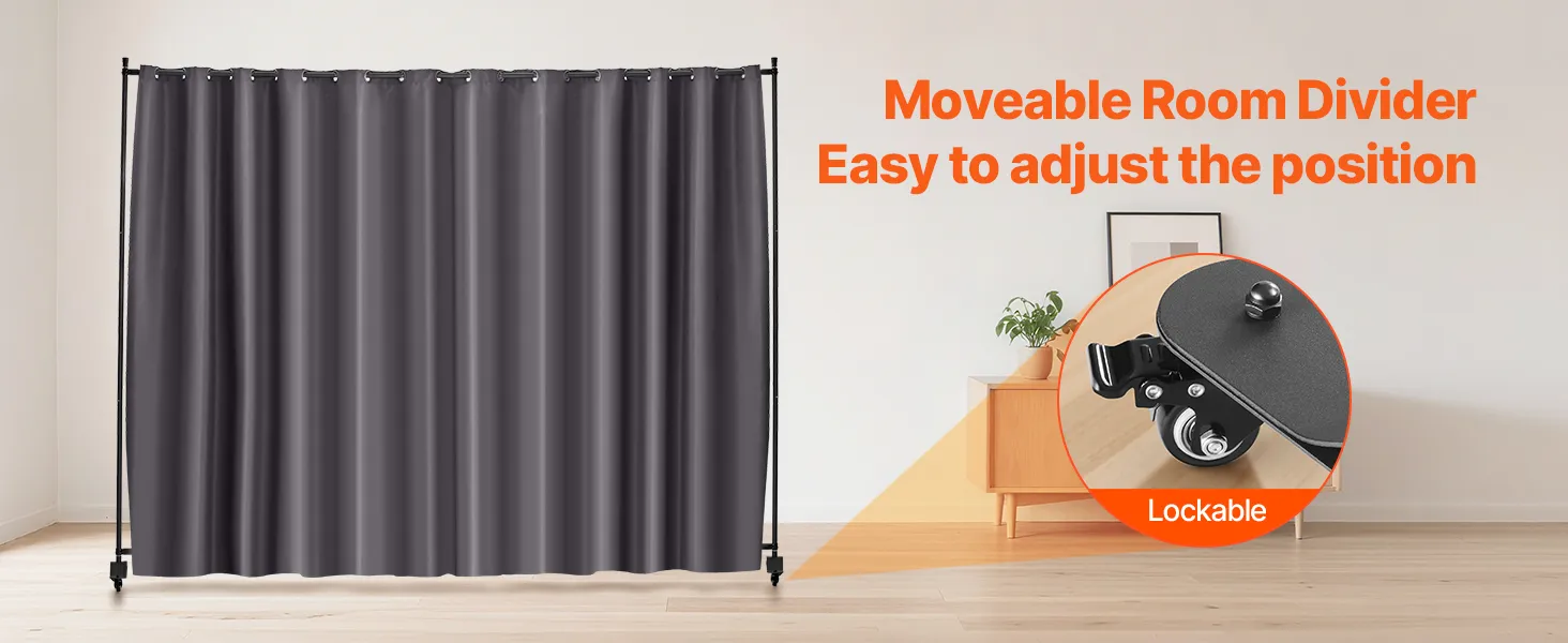 • Flexible and Mobile: Designed with four universal wheels, including two lockable ones and two movable ones, our curtain divider stand for room separation can be easily moved to any desired location. You can conveniently change the position of the divider with the flexible wheels to suit your needs.