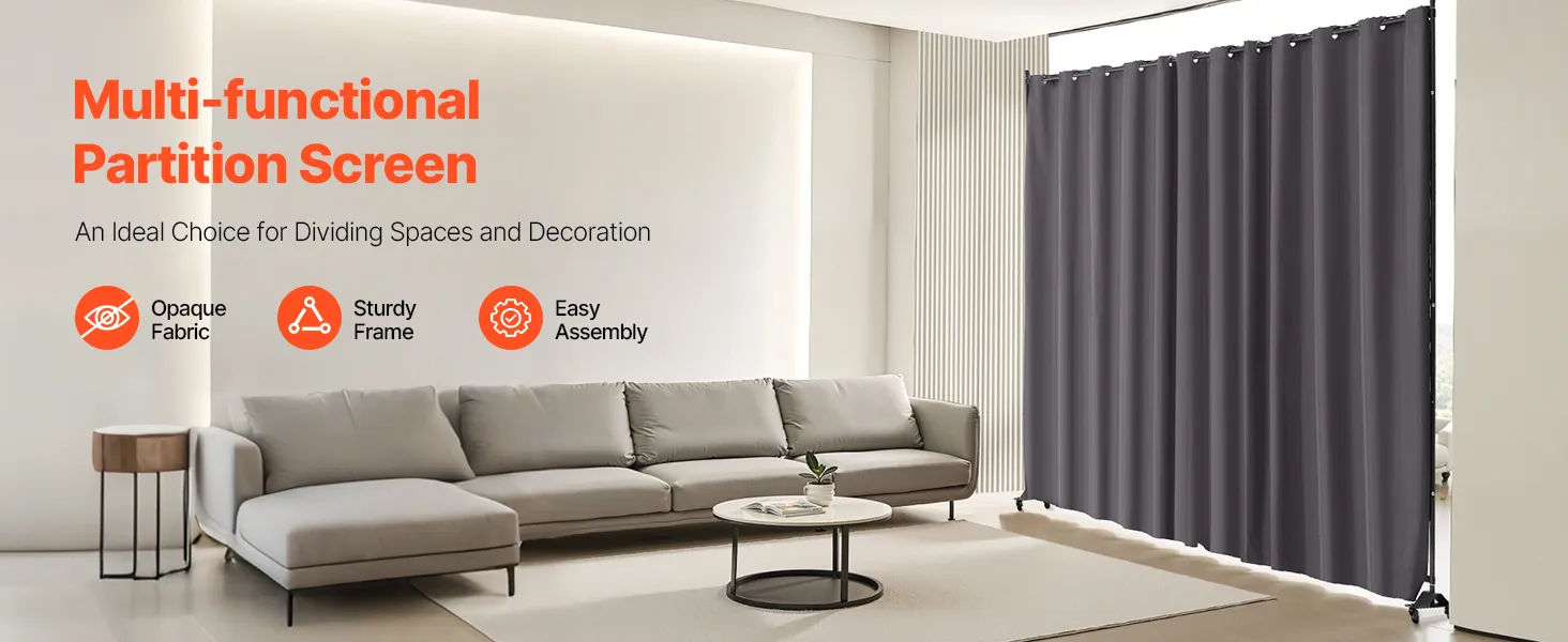 VEVOR Room Divider, Portable Panel Room Divider with Wheels Curtain Divider Stand, Freestanding Room Divider Privacy Screen for Office, Bedroom, Dining Room, Study, Gray VEVOR Room Divider, Portable Panel Room Divider with Wheels Curtain Divider Stand, Freestanding Room Divider Privacy Screen for Office, Bedroom, Dining Room, Study, Gray