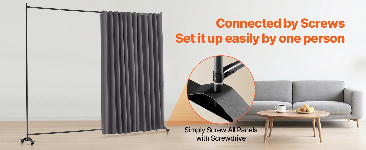 Our partition room dividers feature screw installation, making it easy for one person to assemble them with basic tools.
