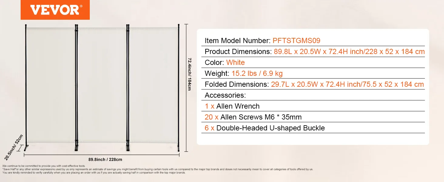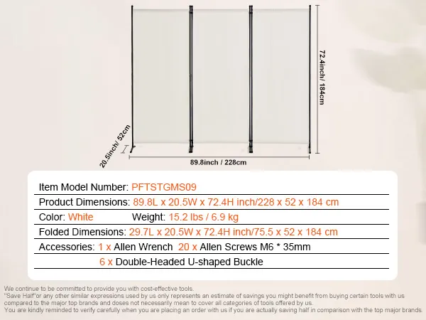 Flexibel en opvouwbaar ontwerp: Uitgevouwen heeft het een formaat van 89,8 x 72,4 x 20,5 inch (228 x 184 x 52 cm) (L x B x H). U kunt de hoogte van elke paneelverbindingsclip aanpassen en er zijn flexibele paneelcombinatieopties om de muurgrootte aan te passen. Opgevouwen is de afmeting 75,5 x 184 x 52 cm (L x B x H) en neemt hij minder dan 1 vierkante meter in beslag als u hem opbergt om ruimte te besparen.