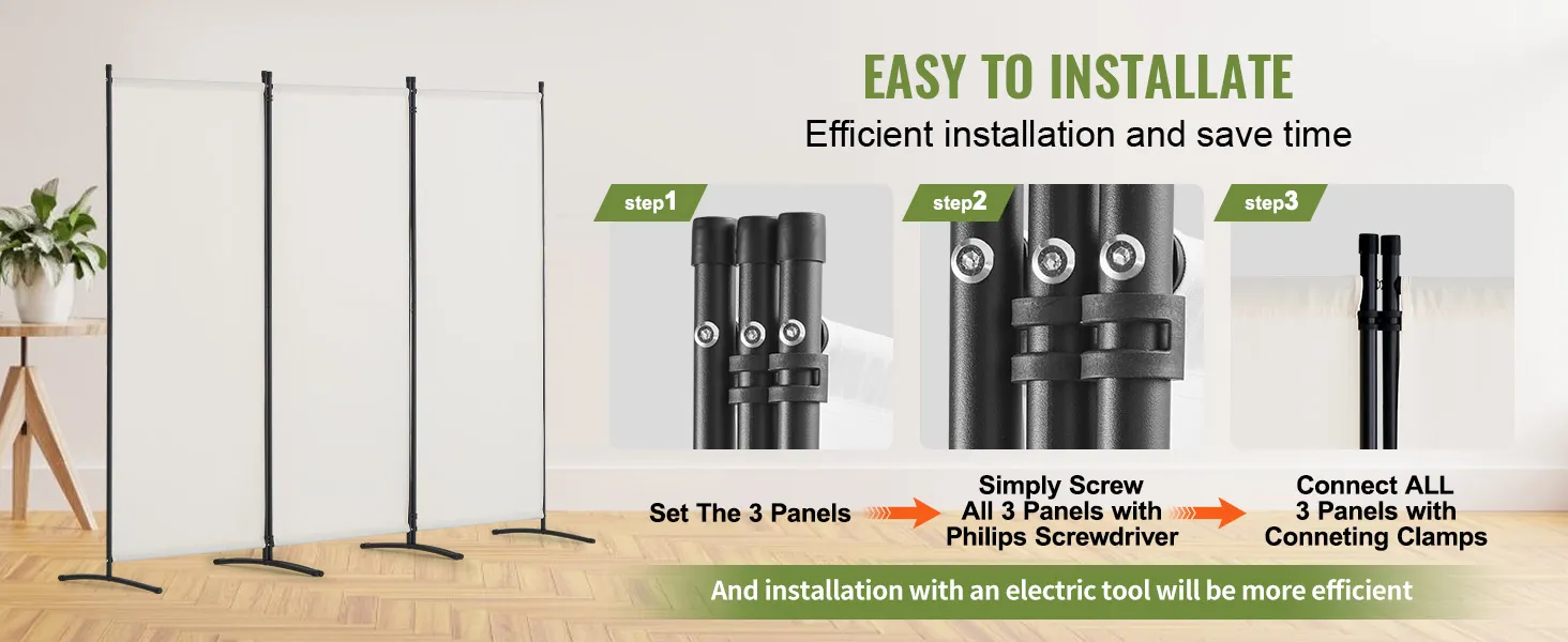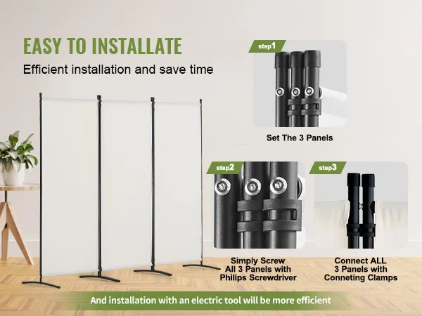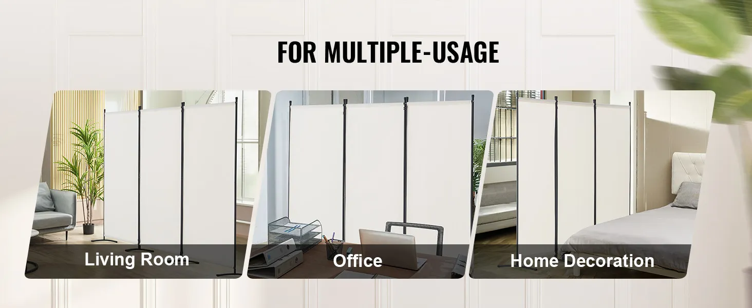 Perfect voor elke kamer: de roomdivider kan in verschillende omgevingen worden gebruikt, zoals slaapkamers, woonkamers, kantoren en ziekenhuizen, om privéruimtes te creëren. LET OP: Als u wilt dat de roomdividers stabieler staan, kunt u de poten van de roomdividers vastzetten met schroef J. De installatie met elektrisch gereedschap is efficiënter.