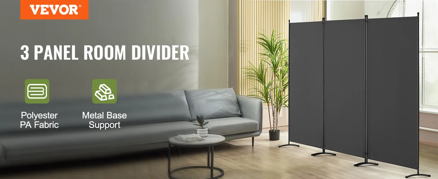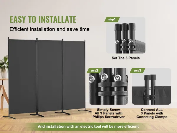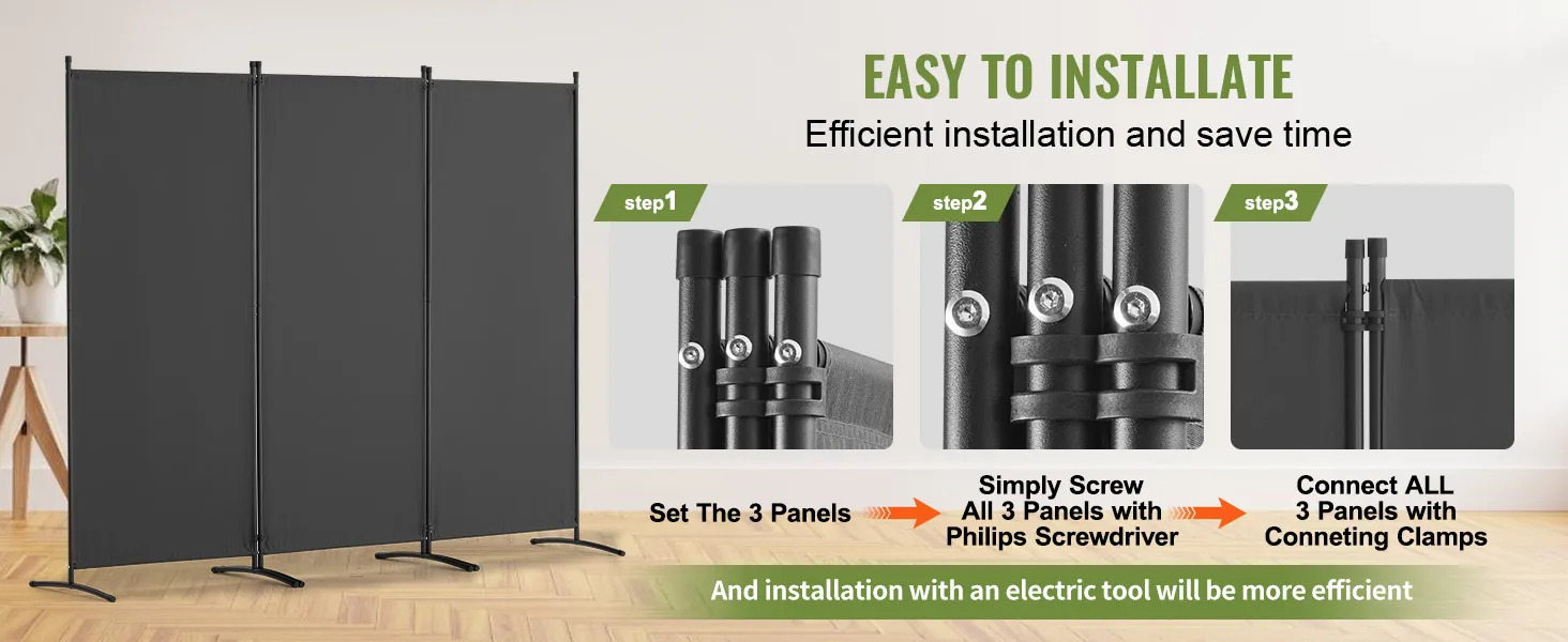 Sturdy and Reliable Construction: Our 3-panel room divider is easy to assemble with 6 connector clips and a carbon steel metal frame. For added stability, we've included two metal bases. This makes our partition sturdy and not easily knocked over by pets or children.