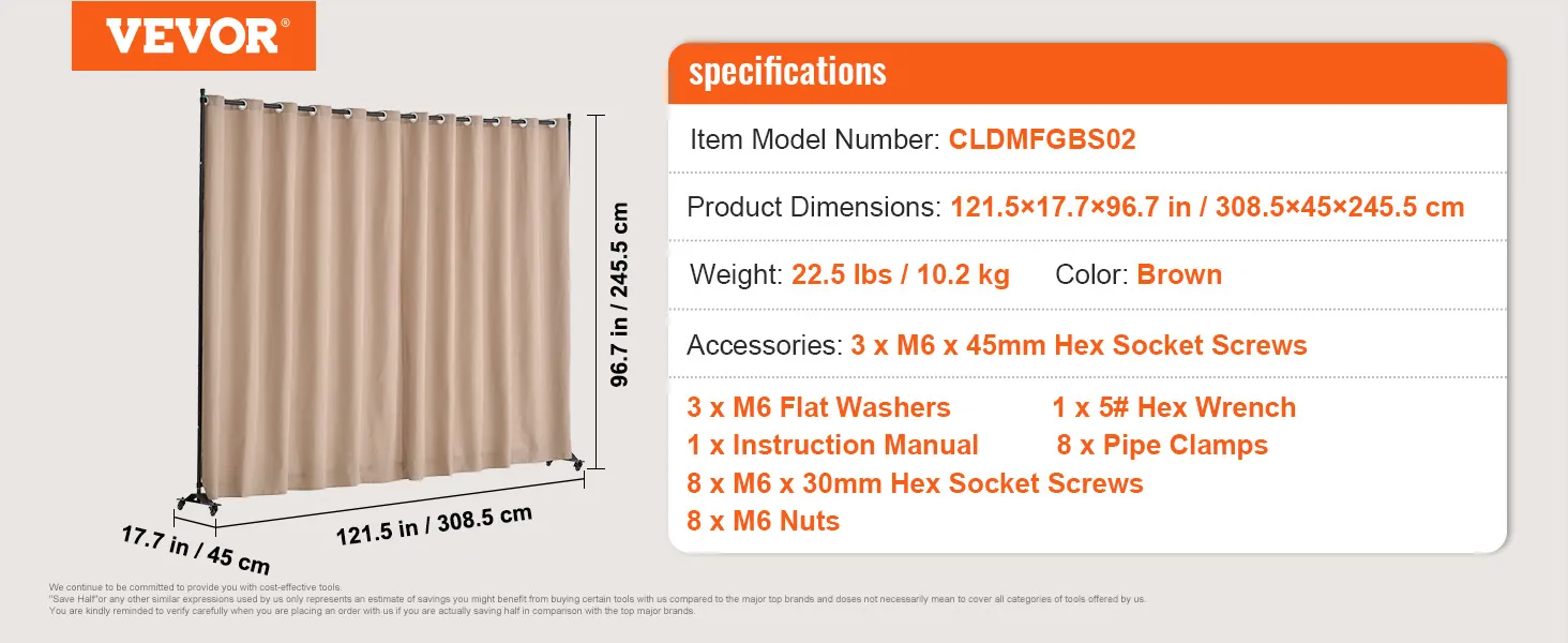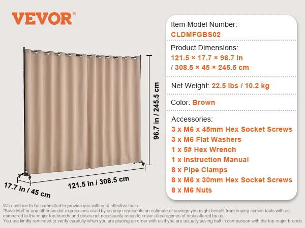 VEVOR Room Divider, Portable Panel Room Divider with Wheels Curtain Divider Stand, Freestanding Room Divider Privacy Screen for Office, Bedroom, Dining Room, Study, Brown VEVOR Room Divider, Portable Panel Room Divider with Wheels Curtain Divider Stand, Freestanding Room Divider Privacy Screen for Office, Bedroom, Dining Room, Study, Brown