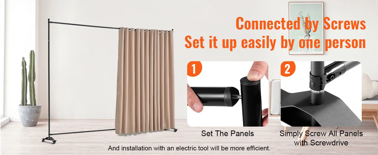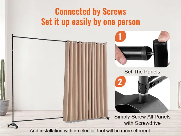Our partition room dividers feature screw installation, making it easy for one person to assemble them with basic tools.