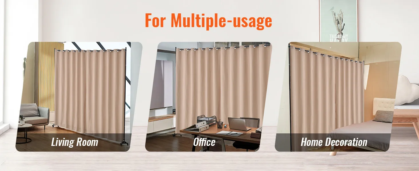 • Flexible and Mobile: Designed with four universal wheels, including two lockable ones and two movable ones, our curtain divider stand for room separation can be easily moved to any desired location. You can conveniently change the position of the divider with the flexible wheels to suit your needs.