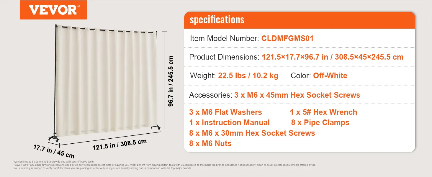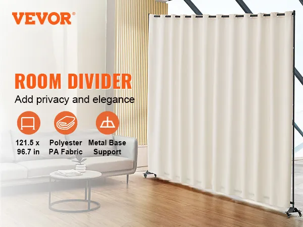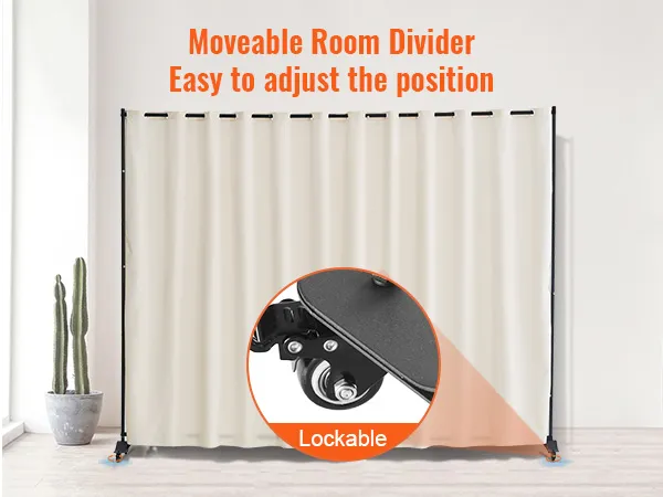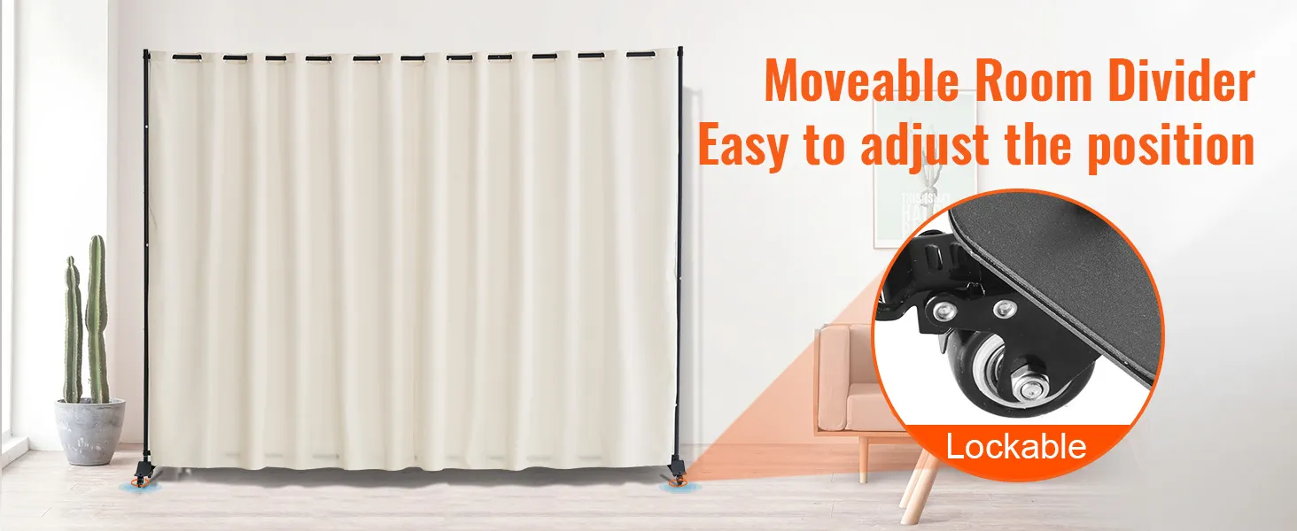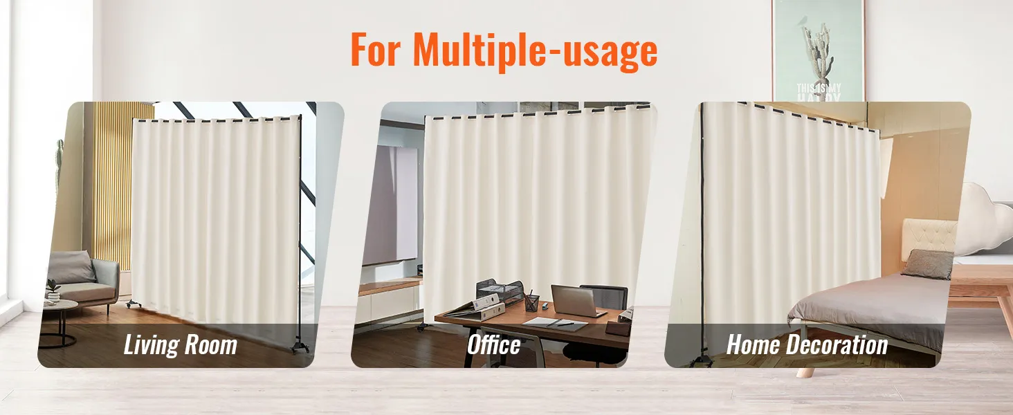 Flexible and Mobile: Designed with four universal wheels, including two lockable ones and two movable ones, our curtain divider stand for room separation can be easily moved to any desired location. You can conveniently change the position of the divider with the flexible wheels to suit your needs.