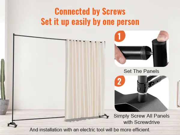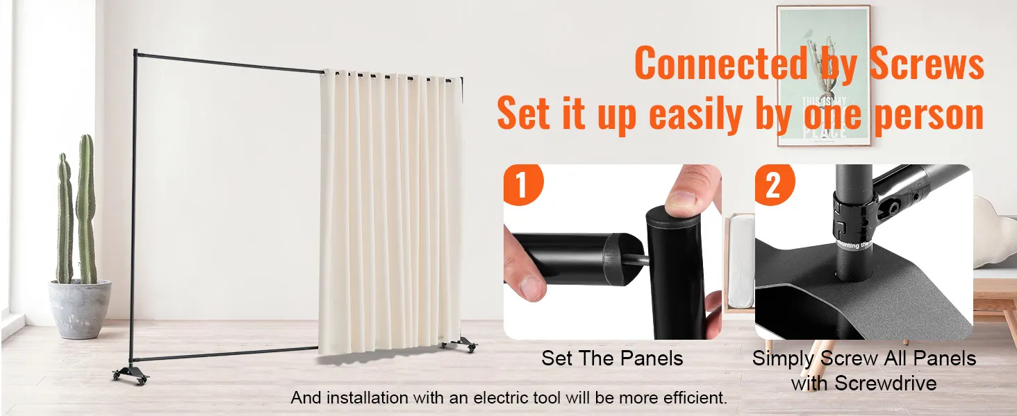 Our partition room dividers feature screw installation, making it easy for one person to assemble them with basic tools.