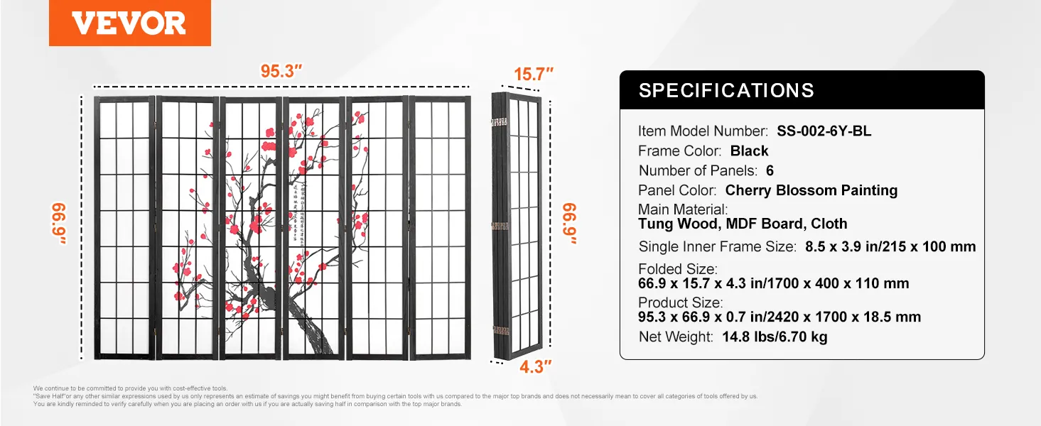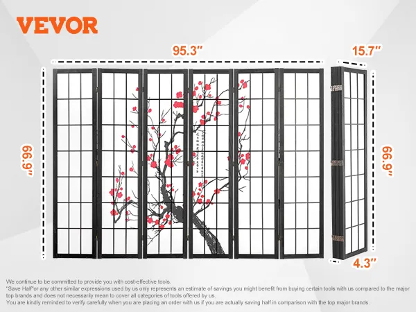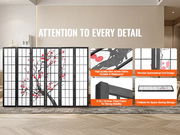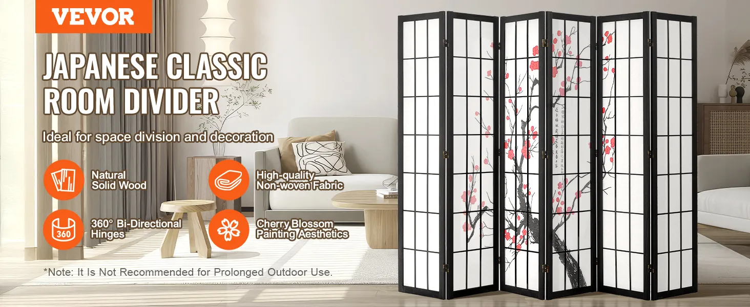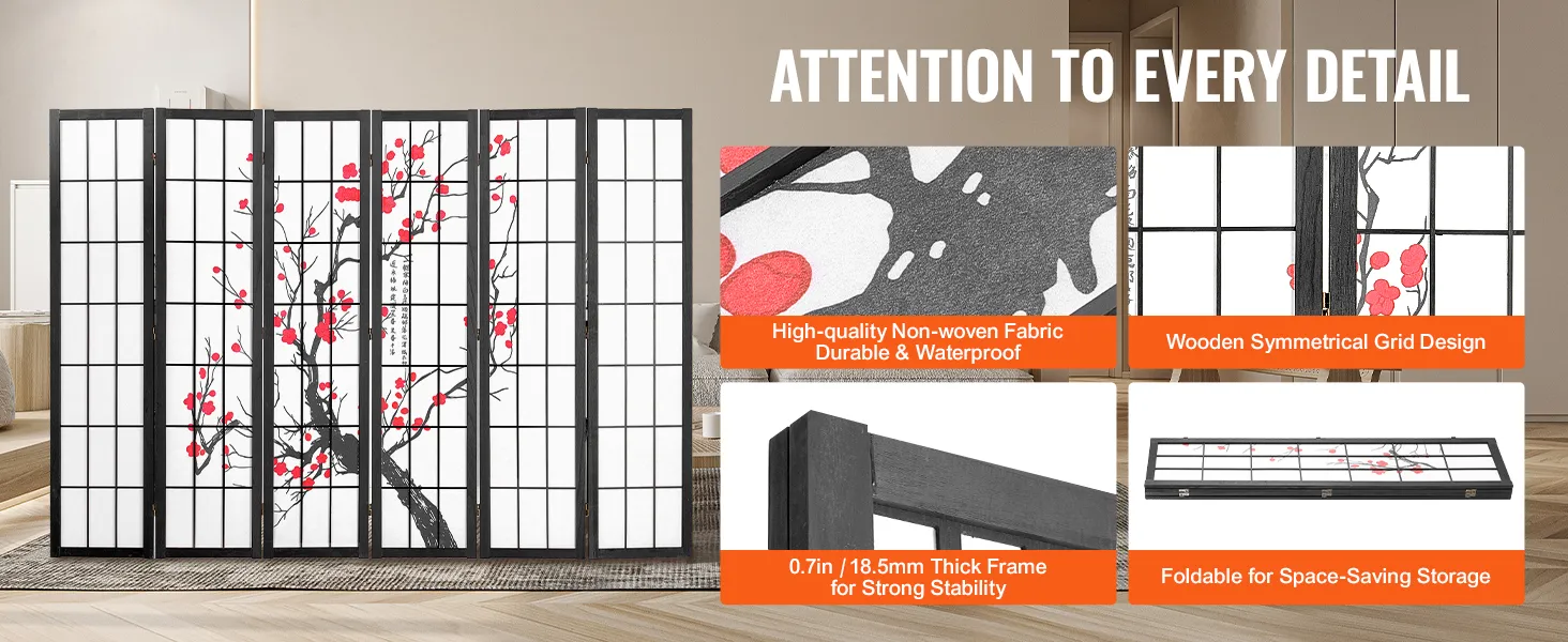 VEVOR Stijlvolle Japanse scheidingswand met 6 panelen