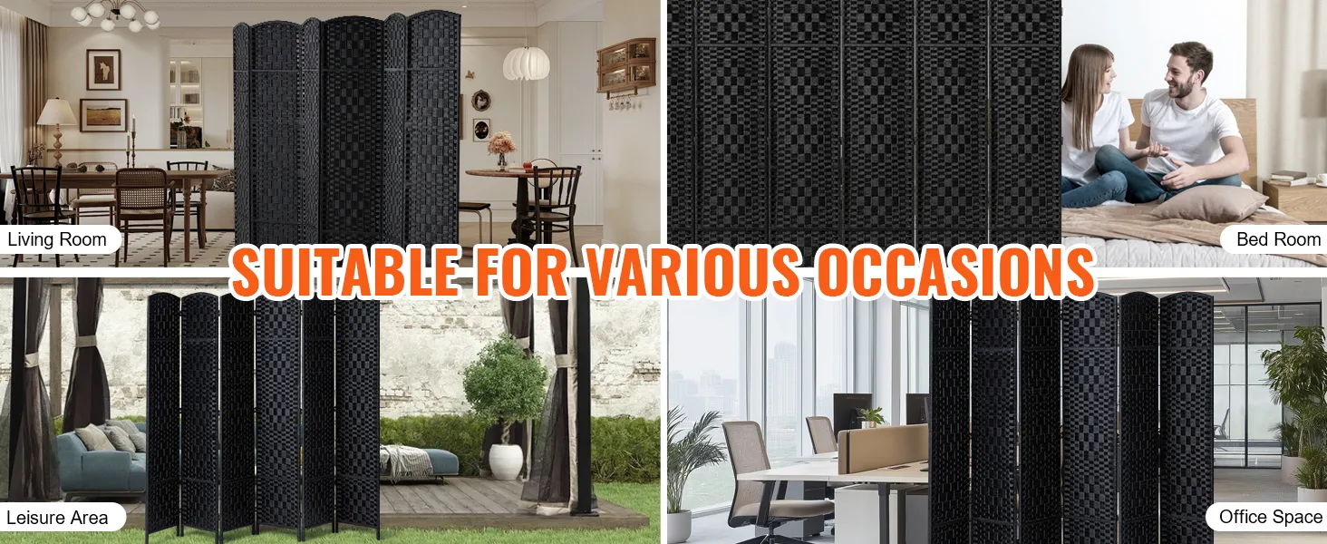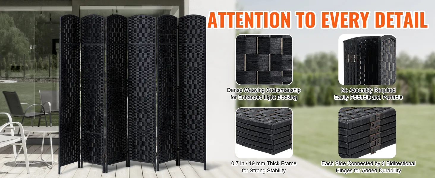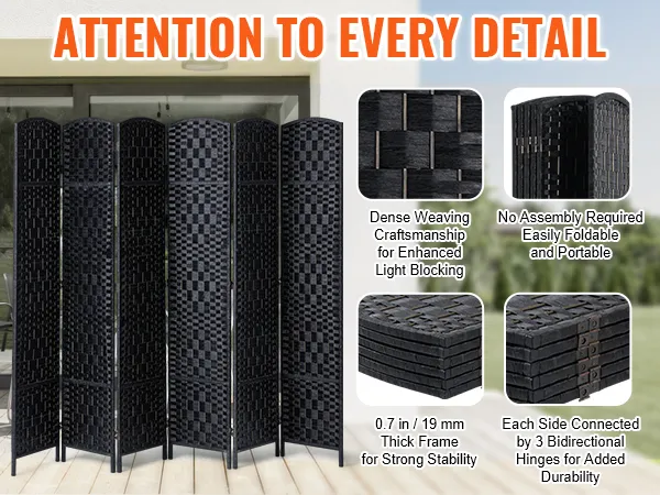 6 Panels Woven Room Divider-Privacy and Style in Every Fold!
