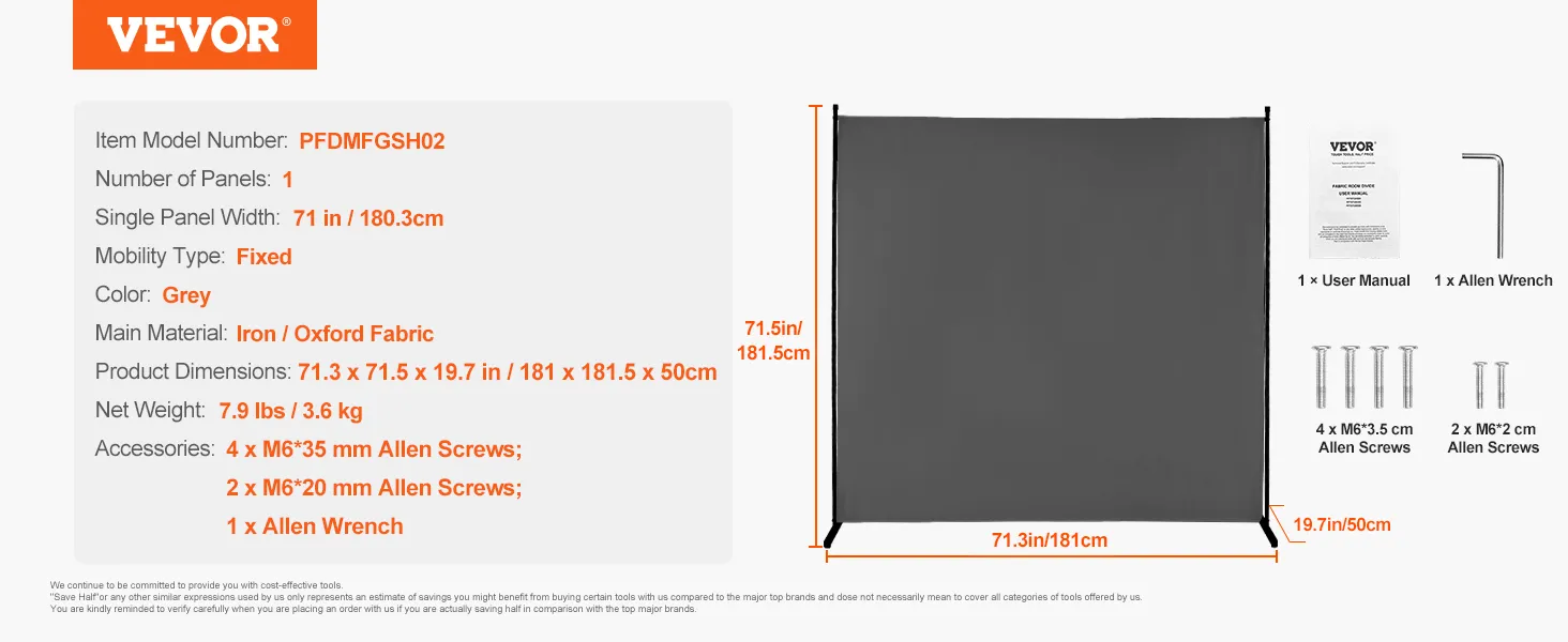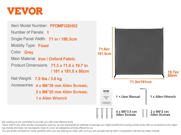 Gemakkelijk te verplaatsen: het privacyscherm meet 1810 x 1815 x 500 mm (71,3 x 71,5 x 19,7 inch) en weegt 3,6 kg (7,9 lbs). Hij is licht van gewicht en gemakkelijk overal mee naartoe te nemen.