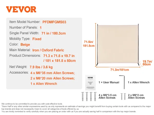 VEVOR Room Divider, Single Panel Room Divider, 6FT Privacy Screen Indoor, Partition Divider for Room Separation, Freestanding Room Divider Panel for Office, Bedroom, Beige VEVOR Room Divider, Single Panel Room Divider, 6FT Privacy Screen Indoor, Partition Divider for Room Separation, Freestanding Room Divider Panel for Office, Bedroom, Beige