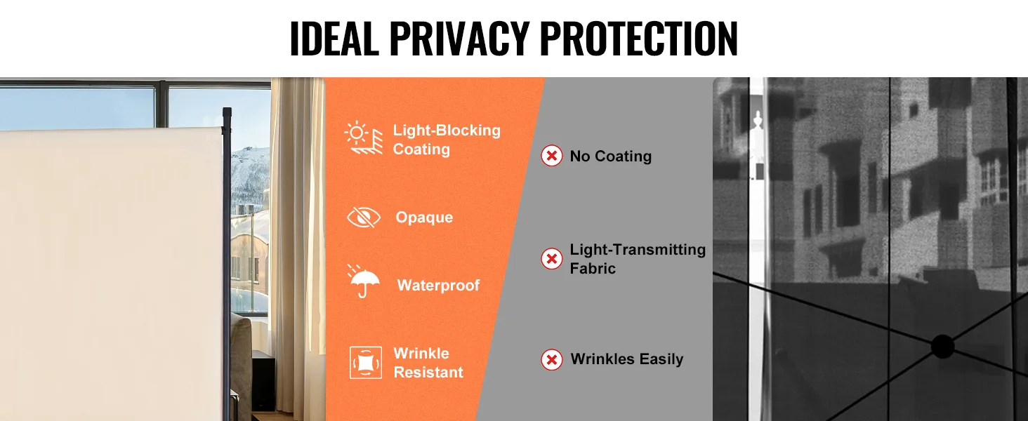 • High-Quality Materials: The single panel room divider is designed with upgraded to Oxford fabric, which is sturdy , waterproof and can give you more privacy. The frame is made of iron material, which is reliable and can make sure that the room divider won't fall. And there are 3 color options to match your home decor and create the ideal arrangement to meet your privacy needs.