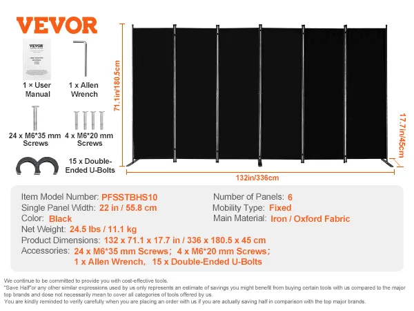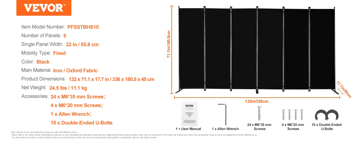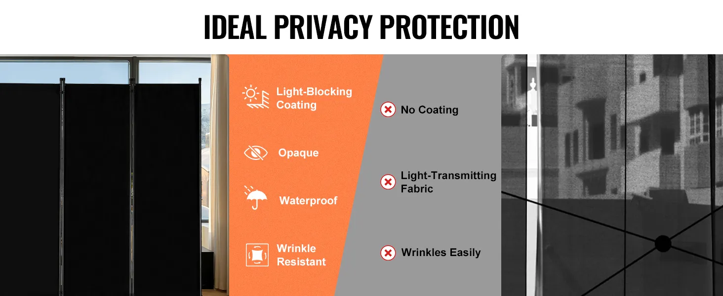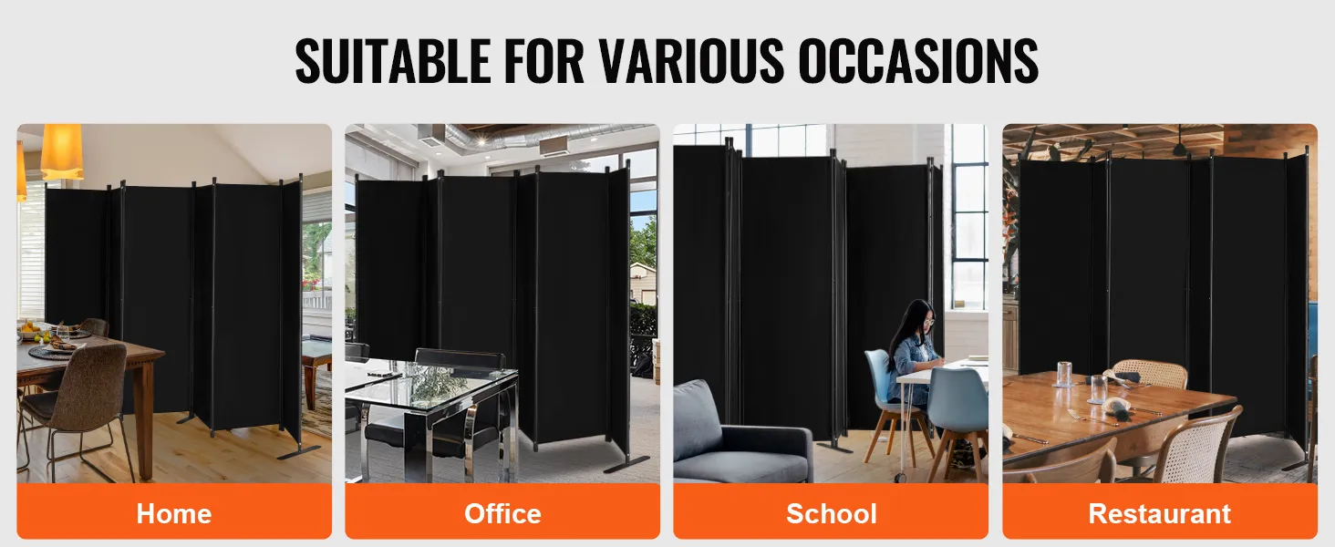 High-Quality Materials: This 6 panel room divider is designed with upgraded to Oxford fabric, which is sturdy , waterproof and can give you more privacy. The frame is made of iron material, which is reliable and can make sure that the room divider won't fall. And there are 3 color options to match your home decor and create the ideal arrangement to meet your privacy needs.